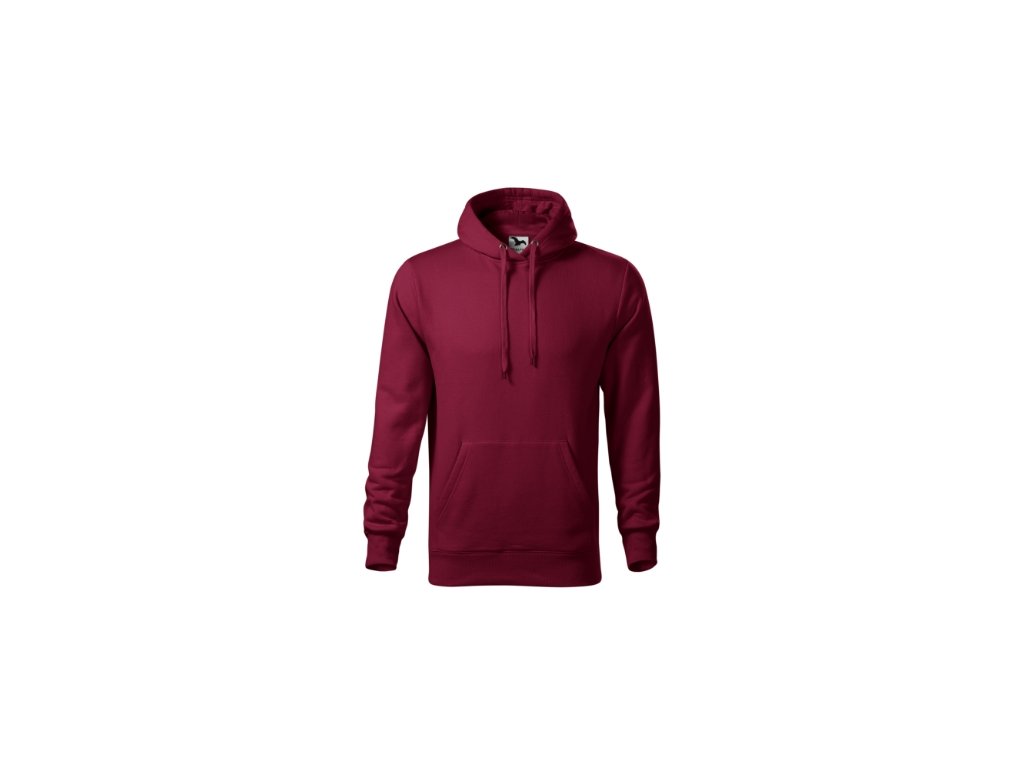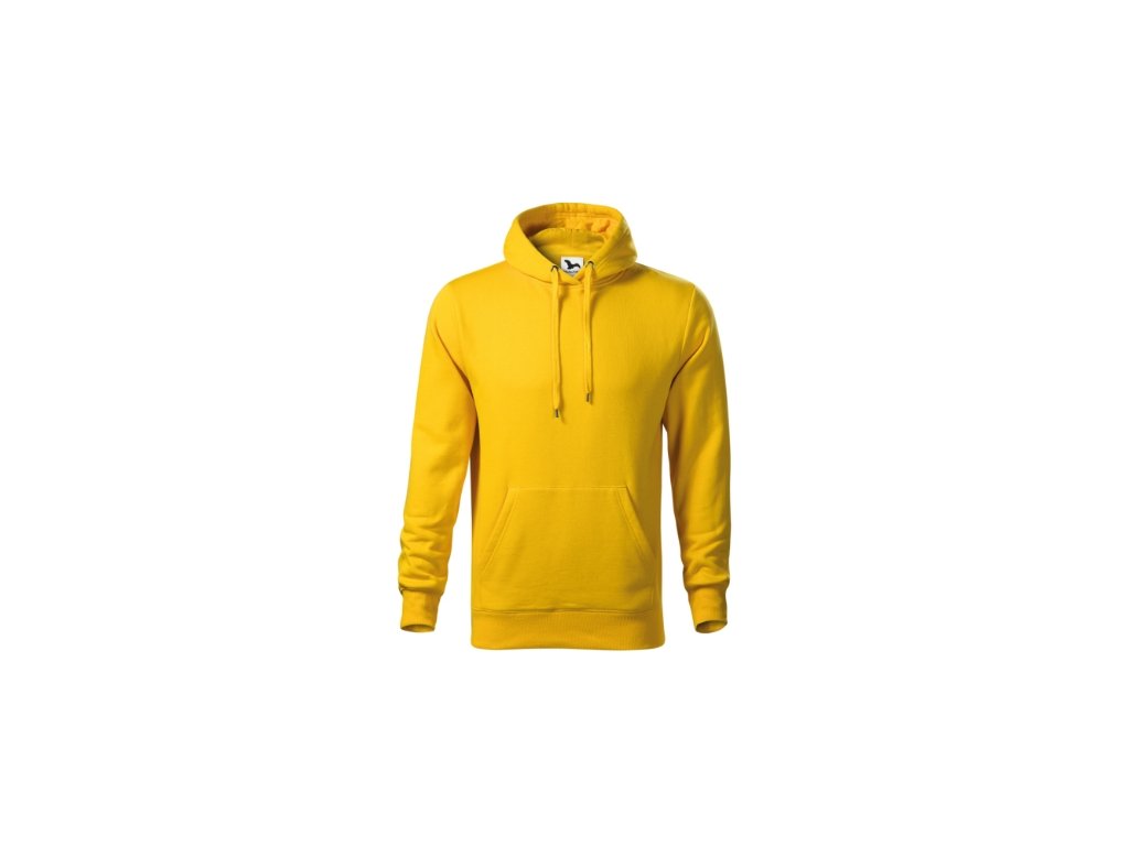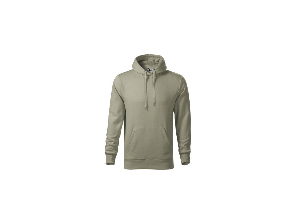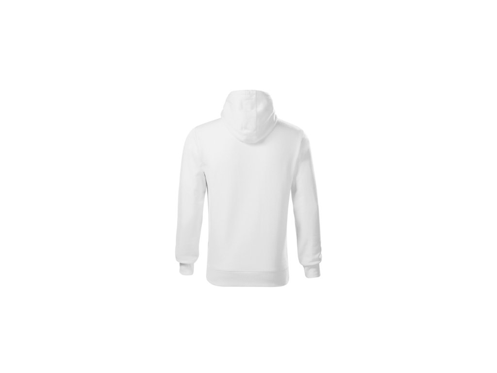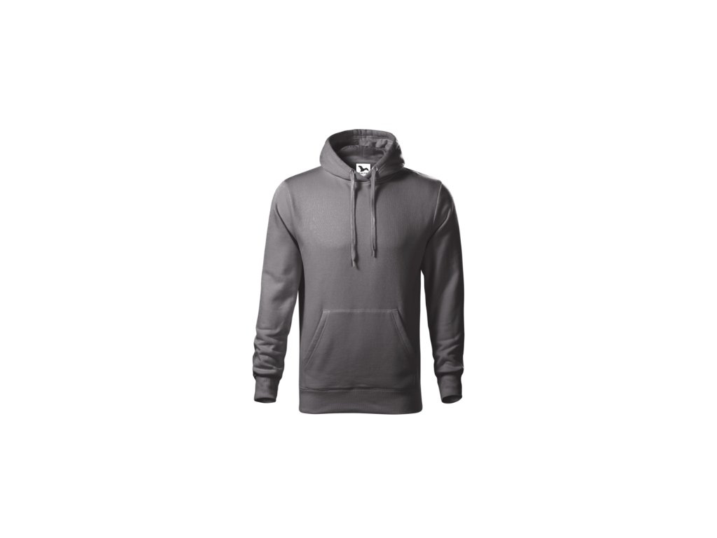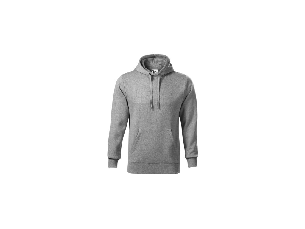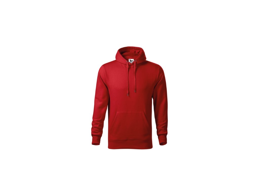 rovný střih s bočními švy, kapuce s podšívkou, na stažení šňůrkou, vnitřní část průkrčníku začištěna páskou v barvě vrchového materiálu, nakládaná kapsa ve stylu klokanky, dolní lem a manžety rukávů z žebrového úpletu 2:2 s 5 % elastanu, vnitřní strana počesaná