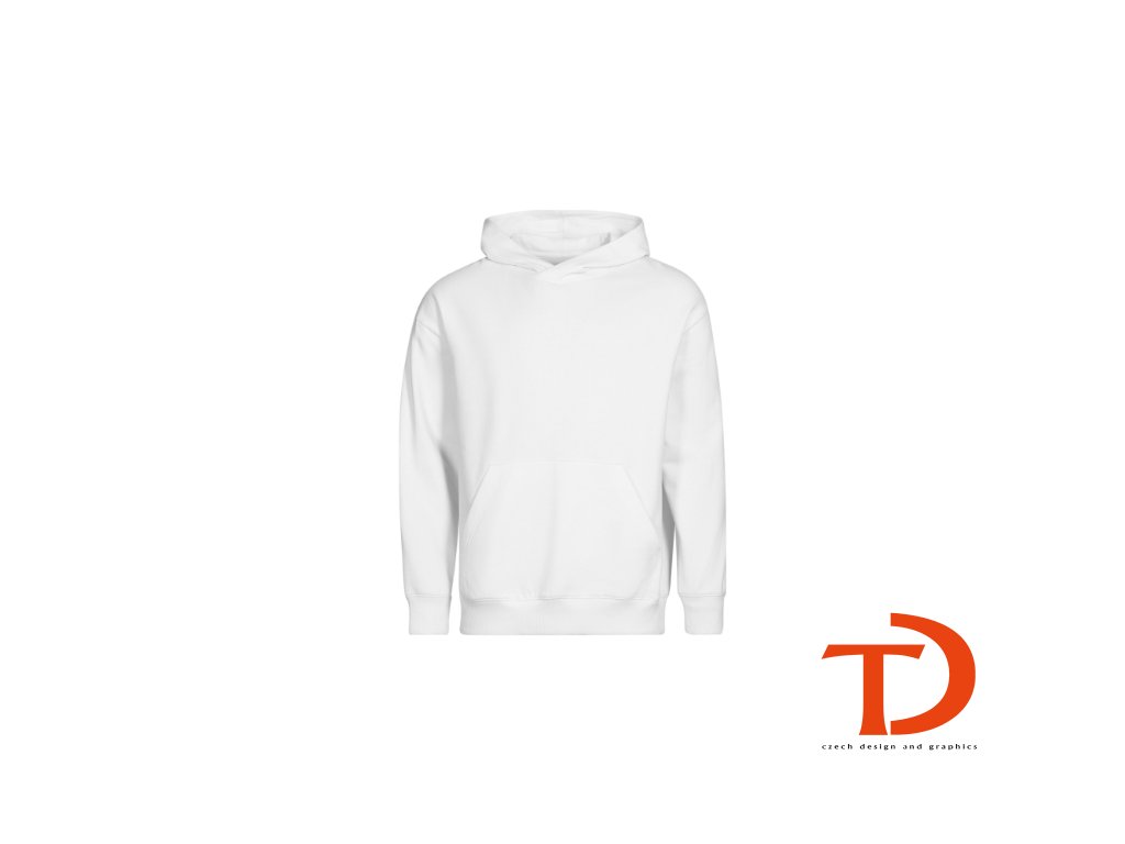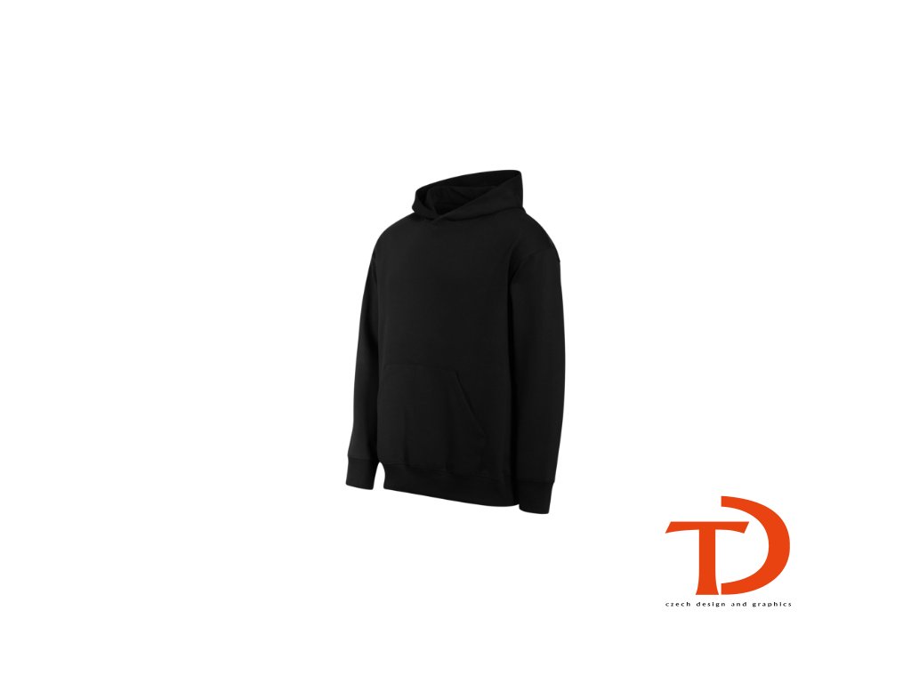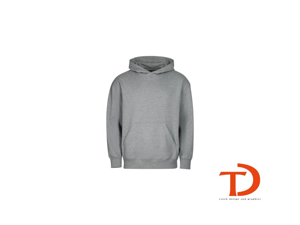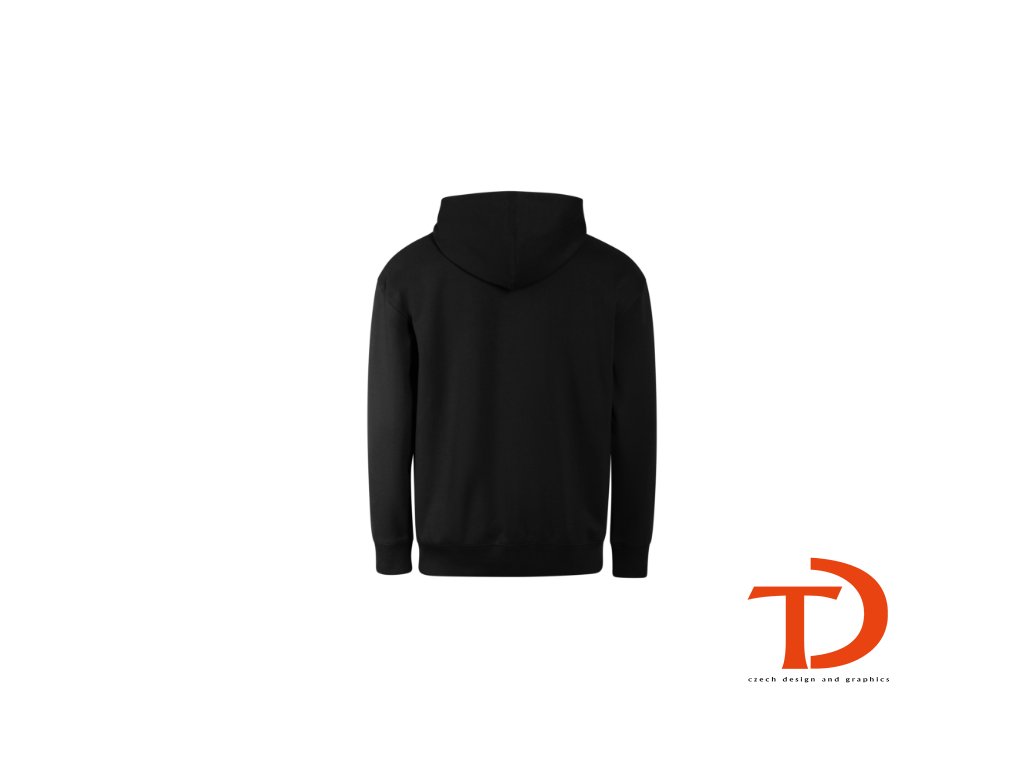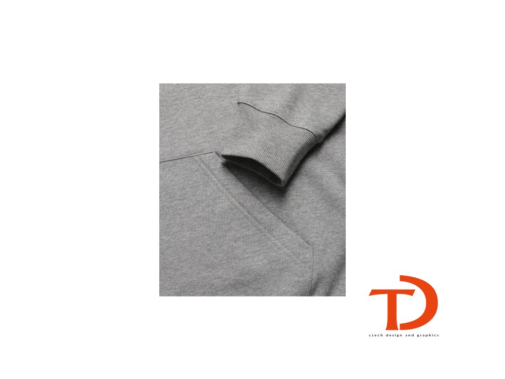 bez etikety - připraveno na rebranding, volný střih s bočními švy, kapuce s podšívkou , neutrální velikostní štítek v boční části průkrčníku, vnitřní část průkrčníku začištěna páskou, nízkohlavicové rukávy, nakládaná kapsa ve stylu klokanky, dolní lem a manžety rukávů z žebrového úpletu 2:2 s 5 % elastanu, vnitřní strana počesanáDoplňkové parametry