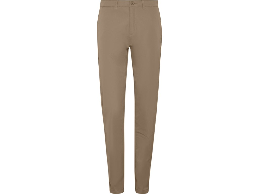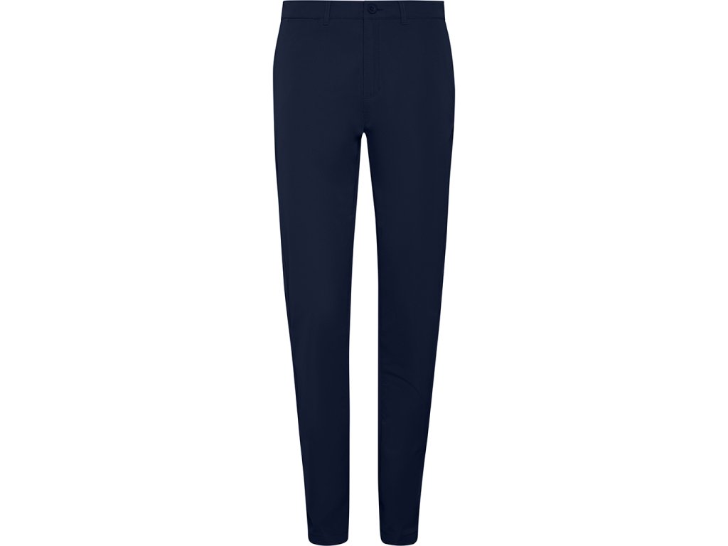 Dámské dlouhé kalhoty. Zapínání na zip a knoflíky. Poutka na opasek. Boční kapsy. Pravá přední kapsa na mince. Pravá zadní kapsa s knoflíkem.