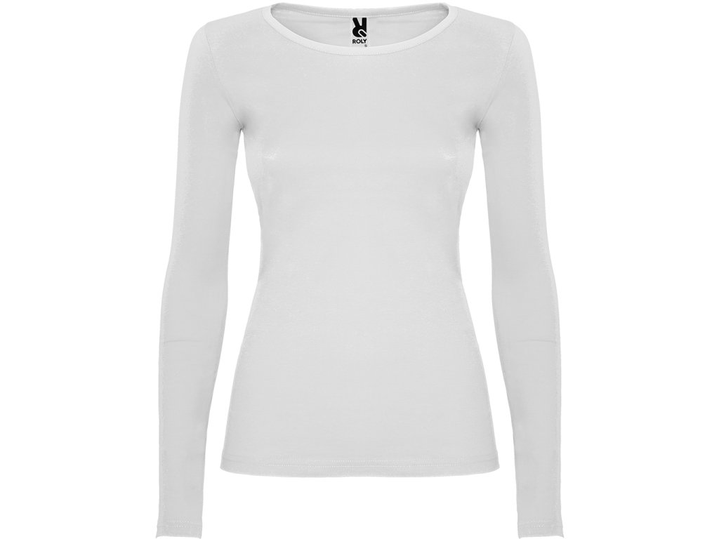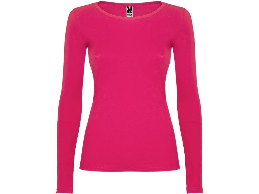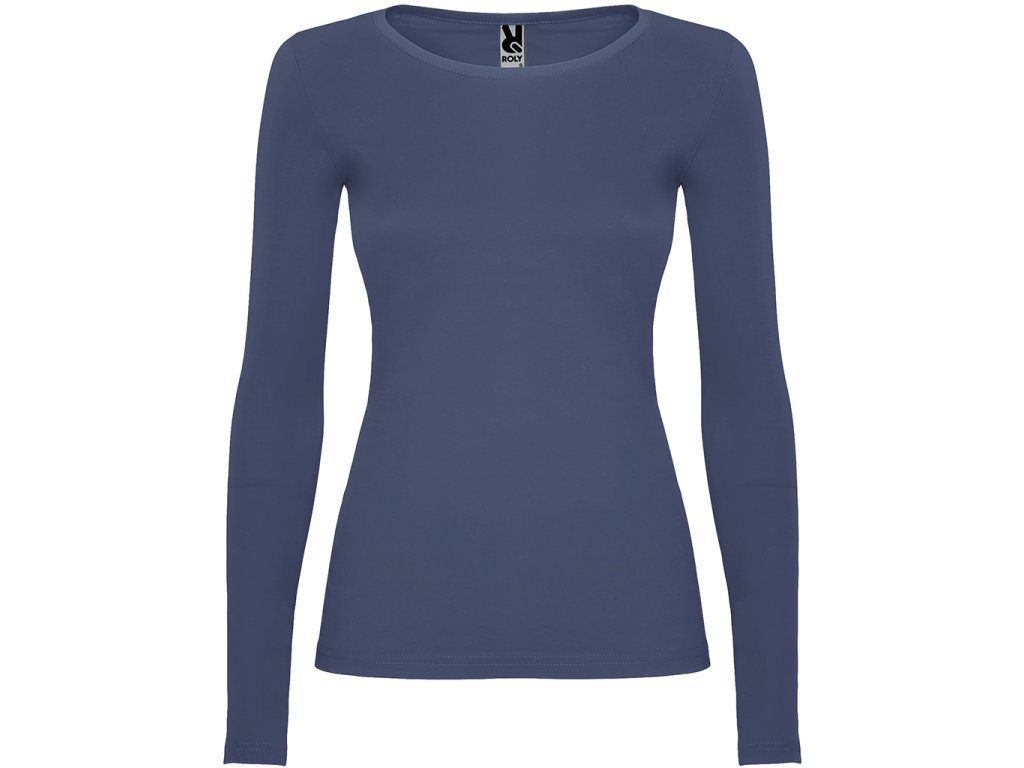 Polopřiléhavé dámské triko s dlouhým rukávem a kulatým výstřihem zakončeným jemným lemem. Rukávy bez manžet, boční švy.