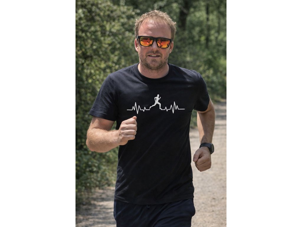 Tričko EKG běžec – pánské je ideální volbou pro muže, kteří milují běhání, aktivní životní styl a sportovní motivy. Grafika EKG linie s běžcem symbolizuje vášeň pro pohyb, vytrvalost a radost ze sportu.