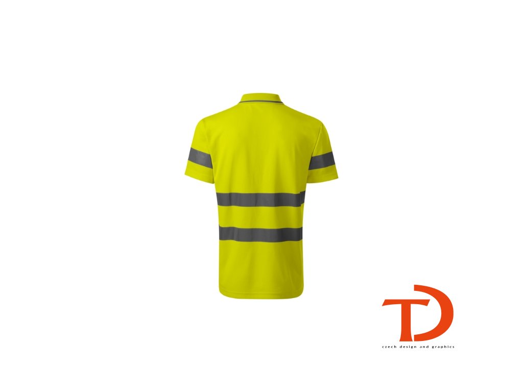oděv s vysokou viditelností, vnější strana fluorescenční polyester, vnitřní strana bavlněná, certifikované retroreflexní pruhy 3M, střih s bočními švy, límeček s kontrastním proužkem z žebrového úpletu 1:1, léga s 3 knoflíčky v barvě materiálu, vnitřní průkrčník začištěn páskou z vrchového materiálu, zpevnění ramenních švů páskou, certifikace dle norem EN ISO 20471/A1 (třída 2) a EN ISO 13688Doplňkové parametry