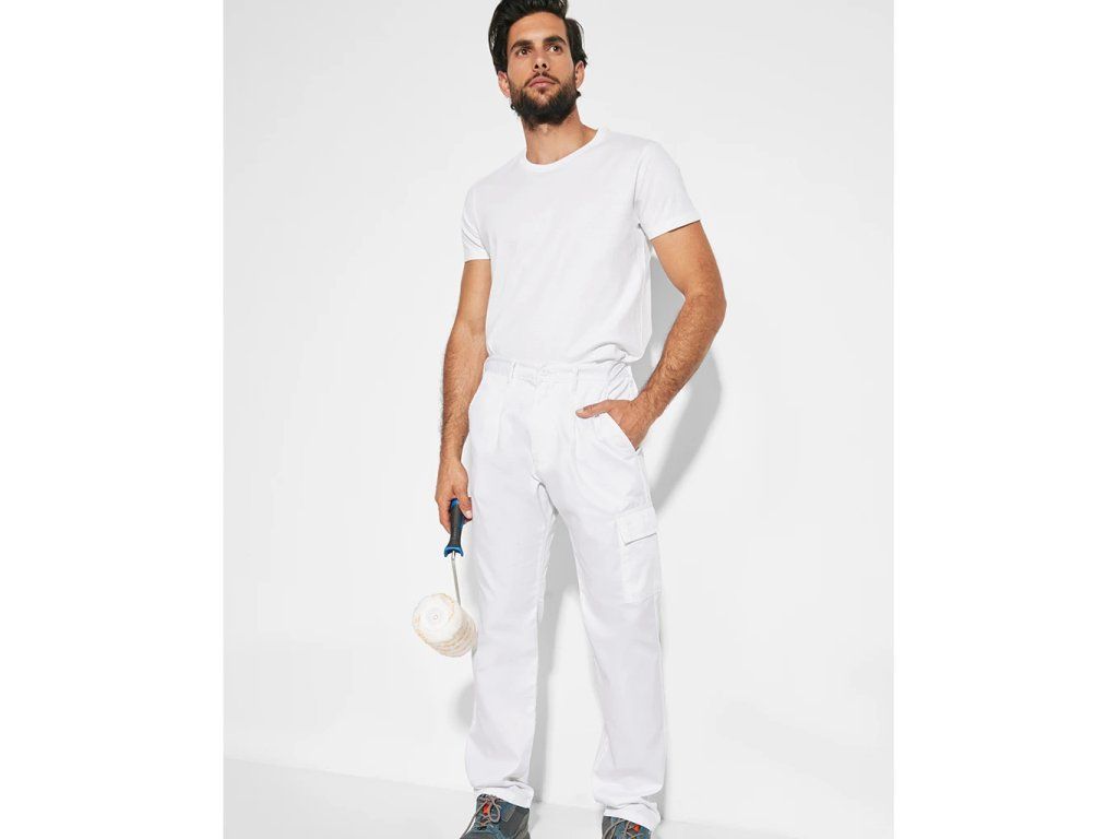 Pracovní kalhoty s odolné látky se dvěma předními kapsami a zadní funkční kapsou. Upravitelný obvod pasu. Pás s poutky na opasek.Doplňkové parametry