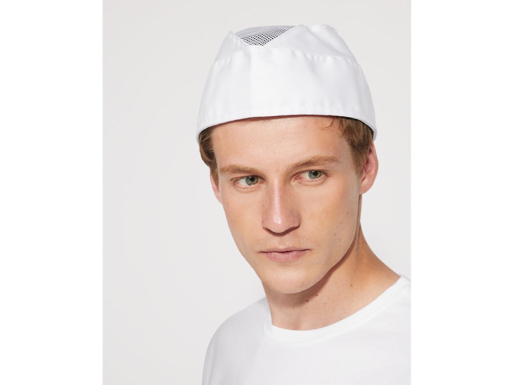 Pracovní čepice s prodyšnou síťovinou nahoře. Vhodné pro obor gastronomie.