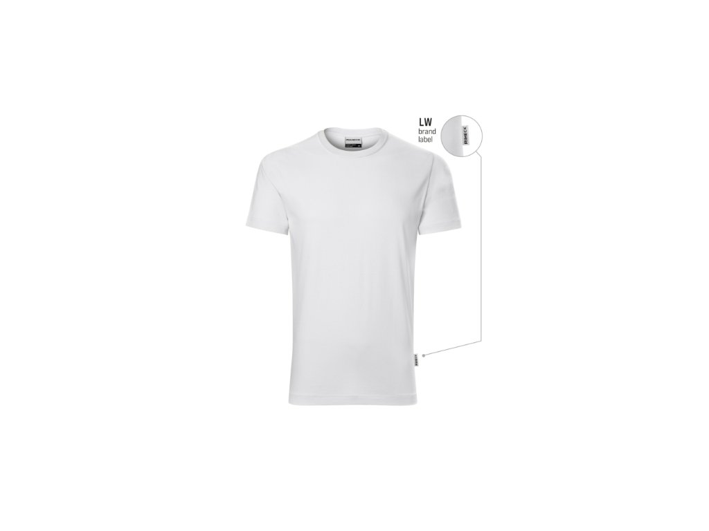 předsrážená bavlna odolná vyšším teplotám, pratelné na 95 °C (bílé) a 60 °C (barevné), střih s bočními švy, průkrčník lemován žebrovým úpletem 1:1, zpevnění ramenních švů páskou, Produkt je dostupný ve dvou variantách: s/bez brand labelu v bočním švu (viz přehled barev). Varianta s brand labelem pouze do vyprodání zásob.