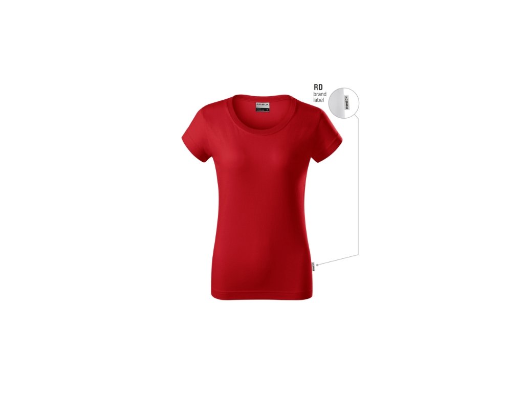 předsrážená bavlna odolná vyšším teplotám, pratelné na 95 °C (bílé) a 60 °C (barevné), lehce vypasovaný střih s bočními švy, průkrčník lemován žebrovým úpletem 1:1, zpevnění ramenních švů páskou, rukávy kratší délky, Produkt je dostupný ve dvou variantách: s/bez brand labelu v bočním švu (viz přehled barev). Varianta s brand labelem pouze do vyprodání zásob.