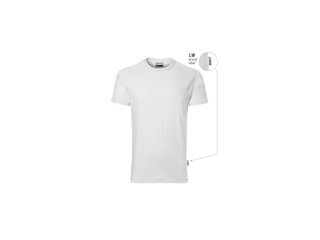 předsrážená bavlna odolná vyšším teplotám, pratelné na 95 °C (bílé) a 60 °C (barevné), střih s bočními švy, průkrčník lemován žebrovým úpletem 1:1, zpevnění ramenních švů páskou, Produkt je dostupný ve dvou variantách: s/bez brand labelu v bočním švu (viz přehled barev). Varianta s brand labelem pouze do vyprodání zásob.