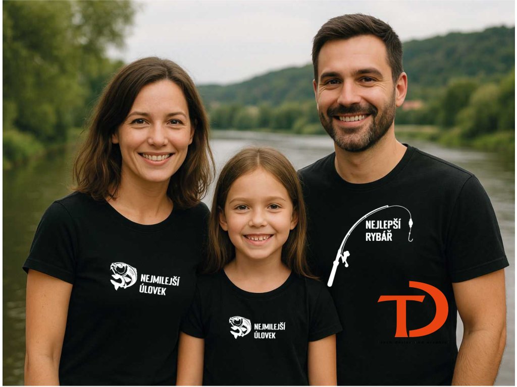 Rodinná trička Pánské nejlepší rybář, dámské nejmilejší úlovek a dětské nejmilejší úlovek