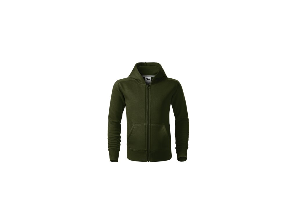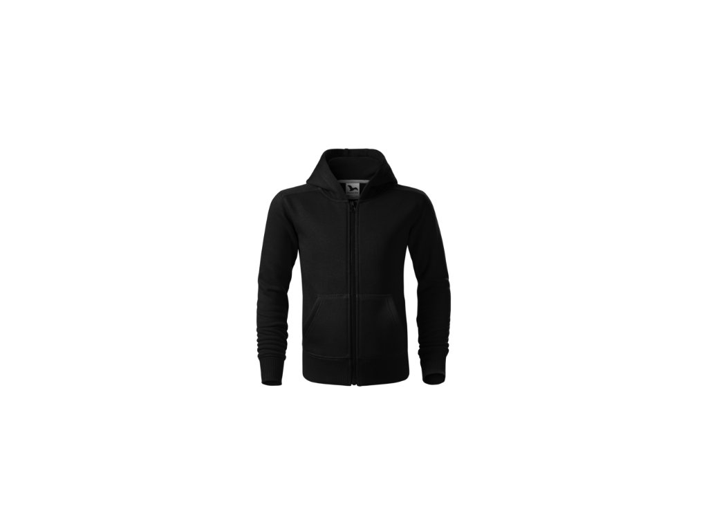 rovný střih s bočními švy, celopropínací kostěný zip, kapuce s podšívkou bez stahovací šňůrky, vnitřní část průkrčníku začištěna kontrastní páskou, nakládané kapsy ve stylu klokanky, dolní lem a manžety rukávů z žebrového úpletu 2:2 s 5 % elastanu, vnitřní strana počesanáDoplňkové parametry