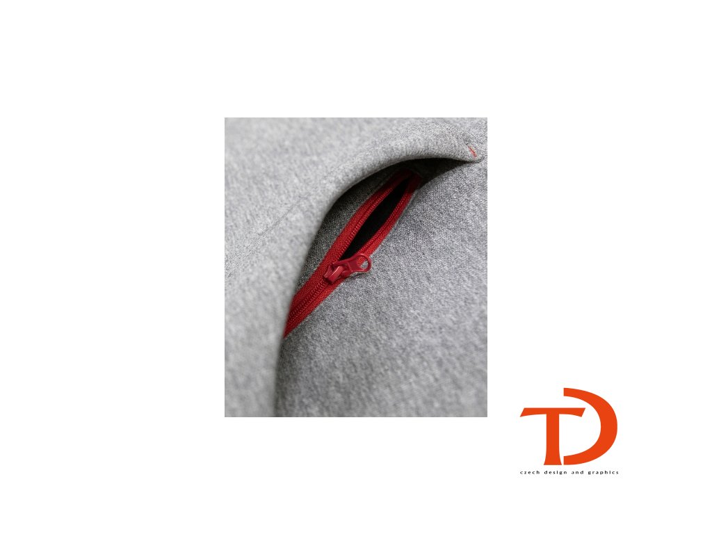 rovný střih s bočními švy, kapuce s podšívkou, na stažení elastickou šňůrkou, vnitřní část průkrčníku začištěna kontrastní páskou, raglánové rukávy s dvojitým prošitím, nakládaná kapsa ve stylu klokanky, 2 skryté kapsy na zip, dolní lem a manžety rukávů z žebrového úpletu 2:2 s 5 % elastanu, manžety s otvorem pro palec, kontrastní prvky, Nově produkt bez gumové nášivky - v rámci jedné zásilky Vám tak mohou být doručeny dvě verze produktu. Výběr zvolené varianty není možný.Doplňkové parametry