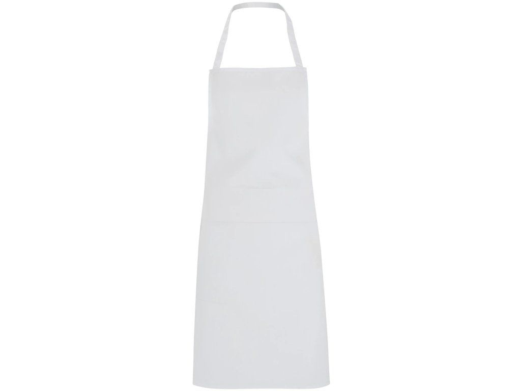 Dlouhá zástěra bez kapes, s páskem za krk a postranními šňůrkámi na uvázání ve stejné barvě. Model je vhodný pro přípravu potravin. Odnímatelný štítek.Doplňkové parametry